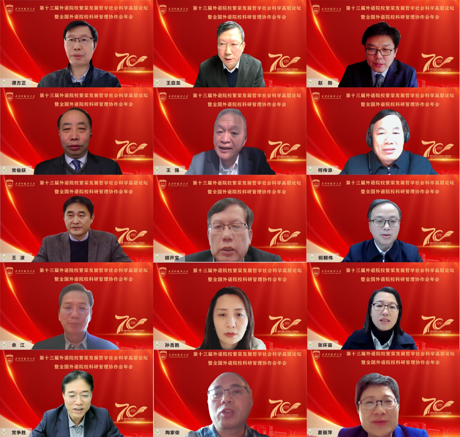 12月16日,由全国外语院校科研管理协作会主办、我校承办的第十三届外语院校繁荣发展哲学社会科学高层论坛暨全国外语院校科研管理协作会年会在“云端”顺利召开。教育部社科司副司长谭方正、全国13所外语类高校主管科研工作的校领导、我校党委副书记、副校长(主持行政工作)王启龙教授出席会议,各外语类高校科研管理部门负责人、部分综合大学外国语学院的领导和老师、我校各二级学院院长以及主管科研工作的副院长、各级各类科研机构和团队及科研处·科研机构管理中心负责人参加了本次会议。会议由副校长党争胜教授主持。