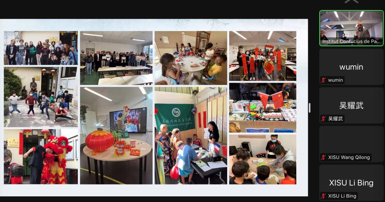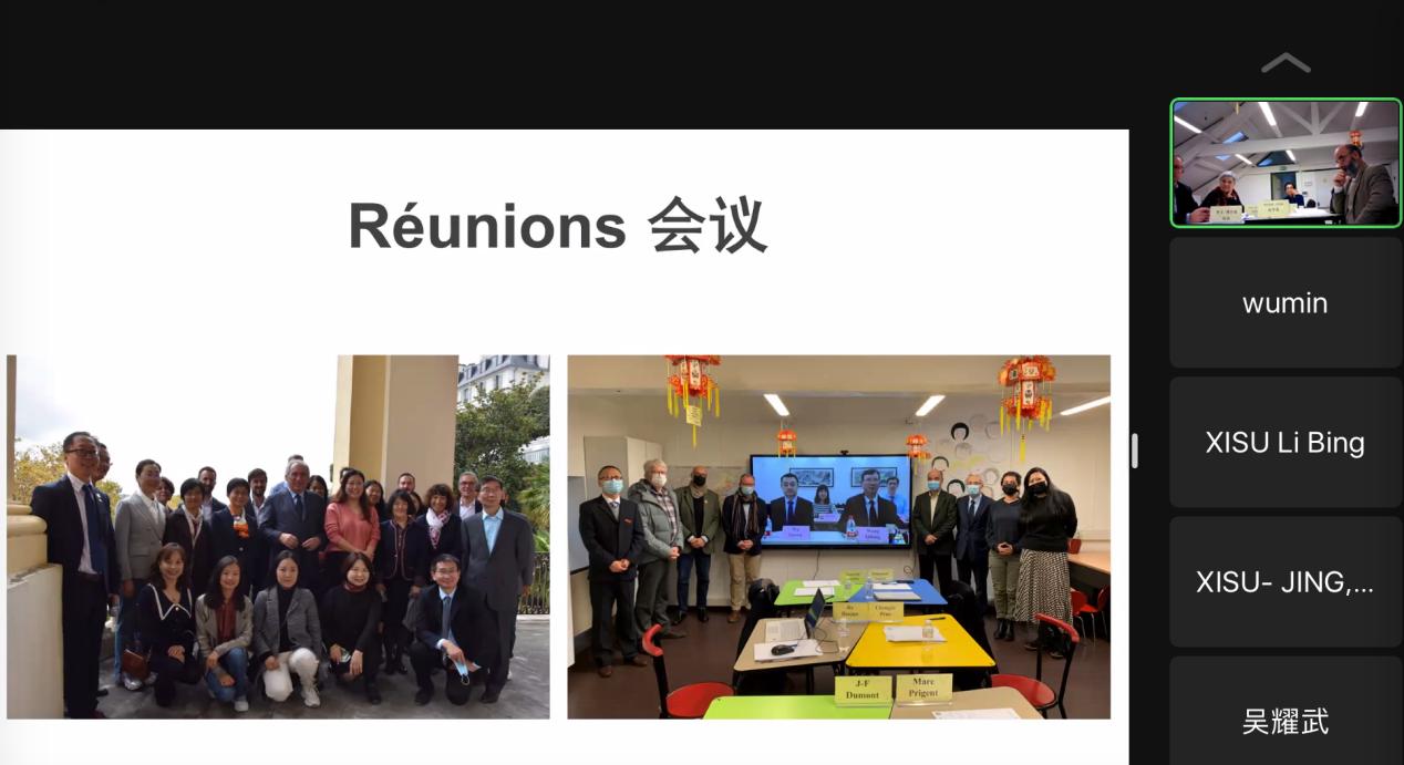 在听取上述报告后,吴耀武代表西外发言,他表示,看到波城孔院今年的各类活动,感到非常欣慰,在疫情如此困难的情况下,波城孔院还能够组织有序的教学、精彩的活动,是非常难得的成绩,他对波城孔院作为中法教育交流宣传的使者表示感谢,并代表西外向支持孔院建设的各方表示衷心的感谢。此外,在看到孔院组织的丰富的文化活动后,他表示,西外可以联合省内相关高校,给孔子学院提供包括艺术、体育、中医等各种支持,并可以定期开展赴法巡展活动,我们将尽可能的支持孔院,丰富孔院教学内容,提高孔院的教学质量。
