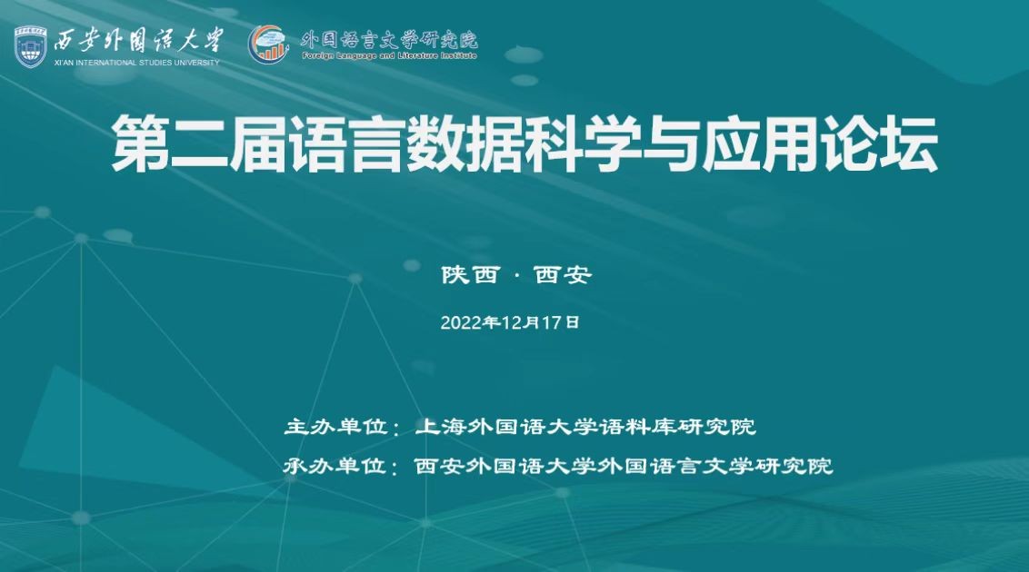 2022年12月17日,由上海外国语大学语料库研究院主办,我校外国语言文学研究院承办的“第二届语言数据科学与应用论坛”在“云端”顺利召开。此次论坛共邀请来自哈尔滨工业大学、北京航空航天大学、上海外国语大学等国内多所著名院校的10余位语言数据科学与应用领域的专家学者做了主旨发言和点评交流,五千余名专家学者和师生通过在线方式参与了本次论坛,论坛开幕式由外国语言文学研究院院长黄立波教授主持。