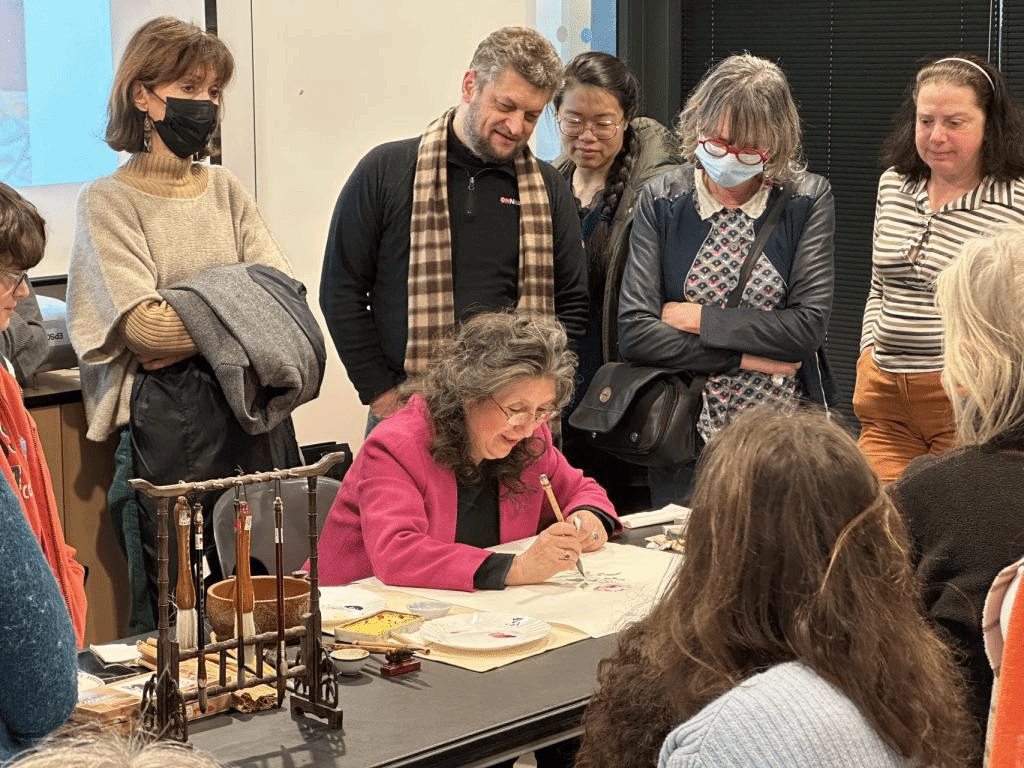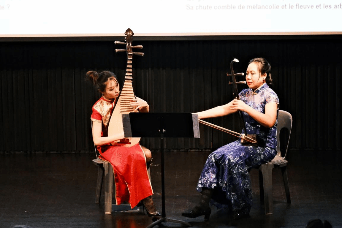 2月2日,波城孔子学院邀请著名法国画家、美术教育家、法籍华人高醇芳女士在市图书馆报告厅为波城市民举办了关于中国文学史的学术讲座。高女士从甲骨文出发,从《诗经》到孔孟老庄,从屈原的《离骚》到陶渊明的田园诗,从《西厢记》到《激流三部曲》,侃侃而谈,最后以法国学生深情朗诵《赋得古原草送别》结束了文学饕餮盛宴。讲座后,著名旅法华人二胡演奏家李艳女士和琵琶演奏家刘镜池女士为大家表演了《春江花月夜》《赶花会》《十面埋伏》《良宵》《空山鸟语》等中国名曲,带观众在中国传统音乐和中国文学史长河中畅游。