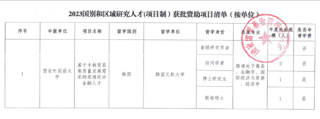 近日,国家留学基金管理委员会公布了“2023年国别区域研究人才支持计划项目”立项结果,我校申报的“基于中韩贸易高质量发展需求的高端经济金融人才培养项目”成功获批立项资助。这是我校首次获批国别区域研究人才支持计划项目,也是我校继2022年首次获批“创新型人才国际合作培养项目”以来,“双一流”国际化指标的又一次重大突破。