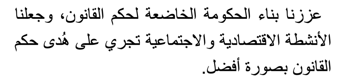 法:Nous avons renforcé la mise en place d’un gouvernement respectueux de la légalité, si bien que la vie économique et sociale a été mieux encadrée par la loi.