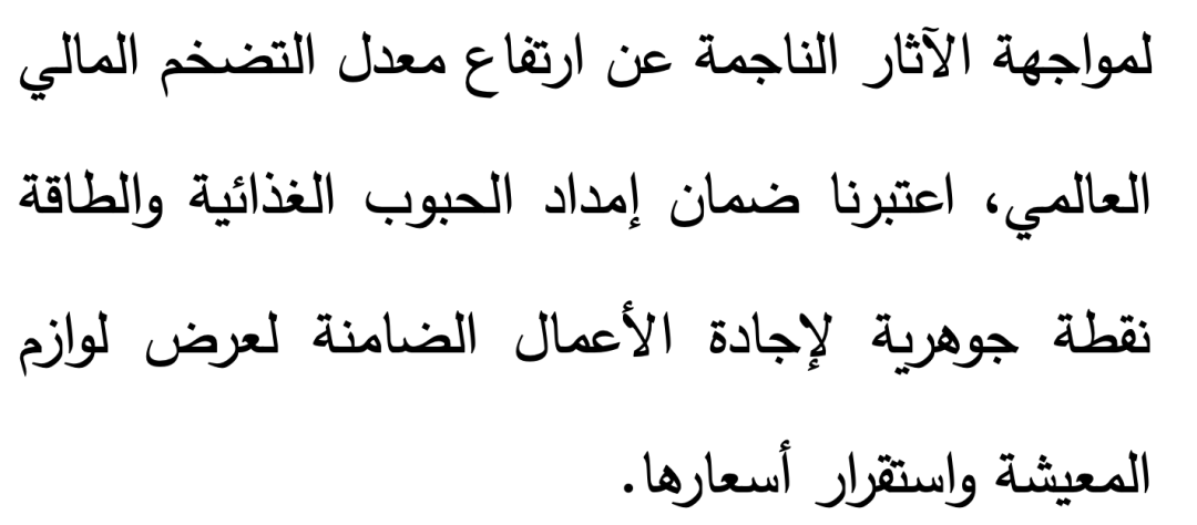 德:Trotz der Auswirkungen des globalen Inflationshochs gelang es uns, die allgemeine Versorgung zu gewährleisten und die Preise stabil zu halten, wobei Getreide und Energie den Schwerpunkt bildeten.