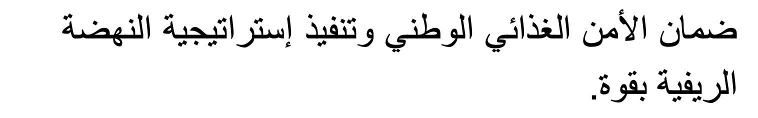 法:Stabiliser la production céréalière et promouvoir le redressement rural.