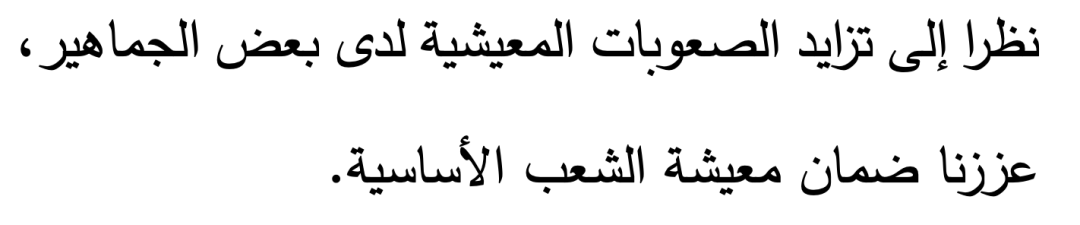 西:Teniendo en cuenta el aumento de las dificultadas de vida de una parte de las masas, hemos reforzado la garantía de las condiciones de vida básicas del pueblo.