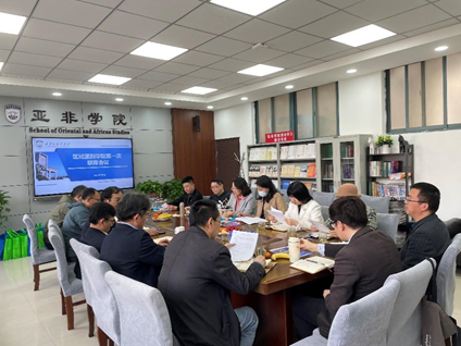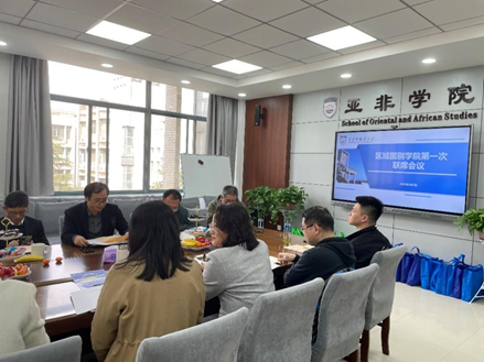为认真落实学校决策,加快建设步伐,3月7日下午,区域国别学院第一次联席会议在亚非学院会议室举行,俄语学院、国际关系学院、日本文化经济学院、欧洲学院、旅游学院、宣传部·教师工作部·新闻中心、亚非学院等单位相关负责人参加会议,会议由区域国别学院常务副院长马福德教授主持。俄语学院副院长马晓迪、余源,欧洲学院区域国别学教研室主任齐赵园,亚非学院副院长唐雪梅、陈泽华,亚非学院教师刘志峰教授等参加此次会议。