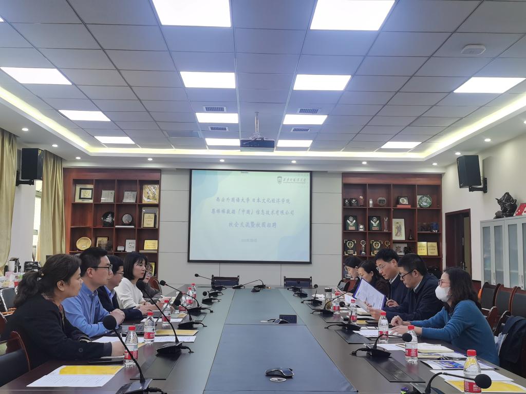 3月8日下午,恩梯梯数据(中国)信息技术有限公司对日开发领域招聘业务部长袁宏涛、招聘经理岳剑峰,BPO中心企画部招聘经理张华、招聘负责人倪玲菲,西安分公司招聘负责人韩文清一行来我校开展校企交流暨校园专场招聘。我校学生就业指导中心主任杨小江、学院党委书记高万辉、副书记龚玉伟、日语(IT方向)教学负责人赵小宁副教授以及毕业班辅导员参加交流座谈会。