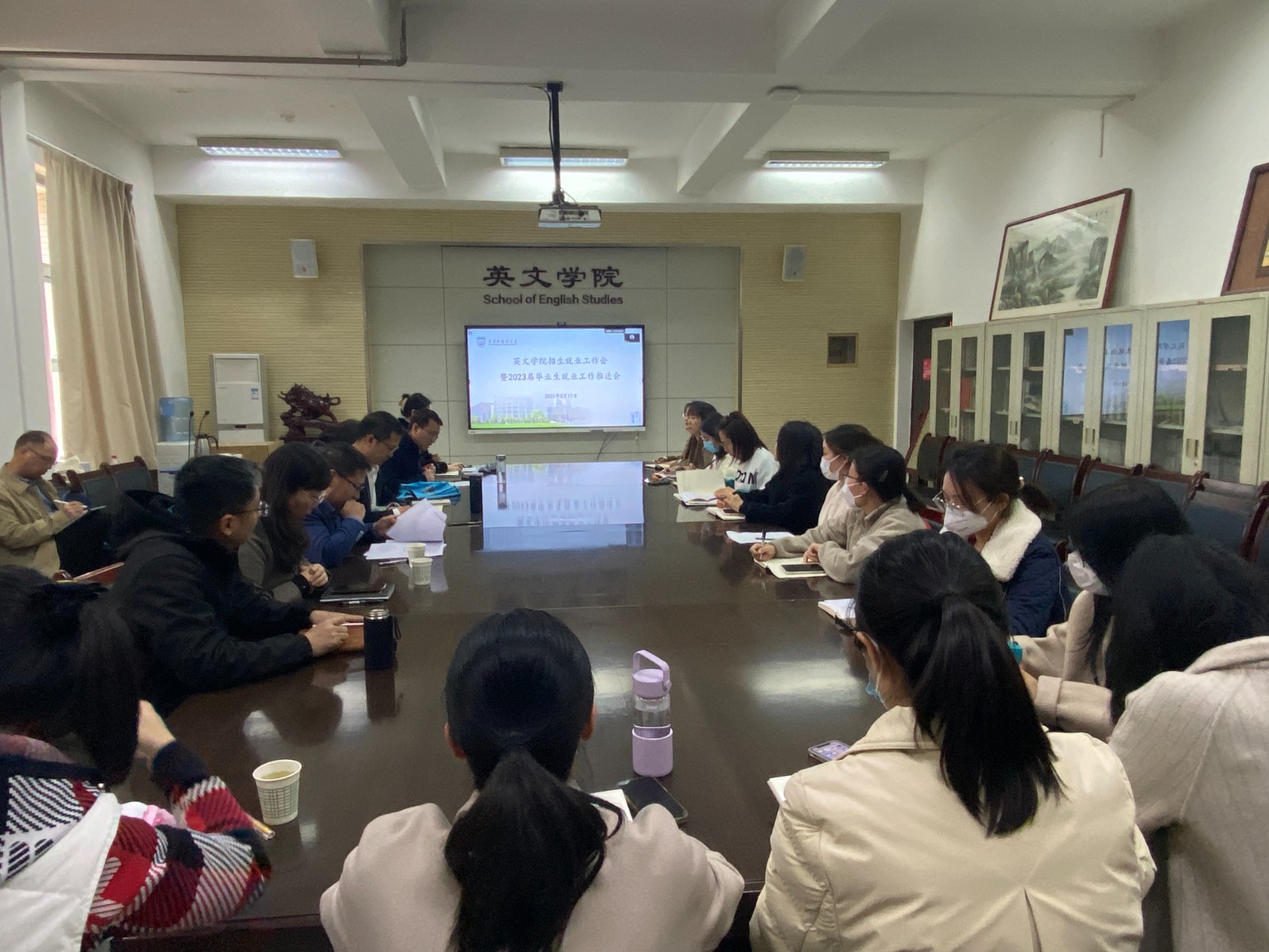 会上,马文静汇报了英文学院2019届至2022届毕业生去向落实情况,从多方面深入分析了学生就业工作存在的问题和短板,总结了工作经验,提出了建议举措和思路。学工秘书高洋领学了《关于做好2023届毕业生就业创业工作的通知》的重点内容。
