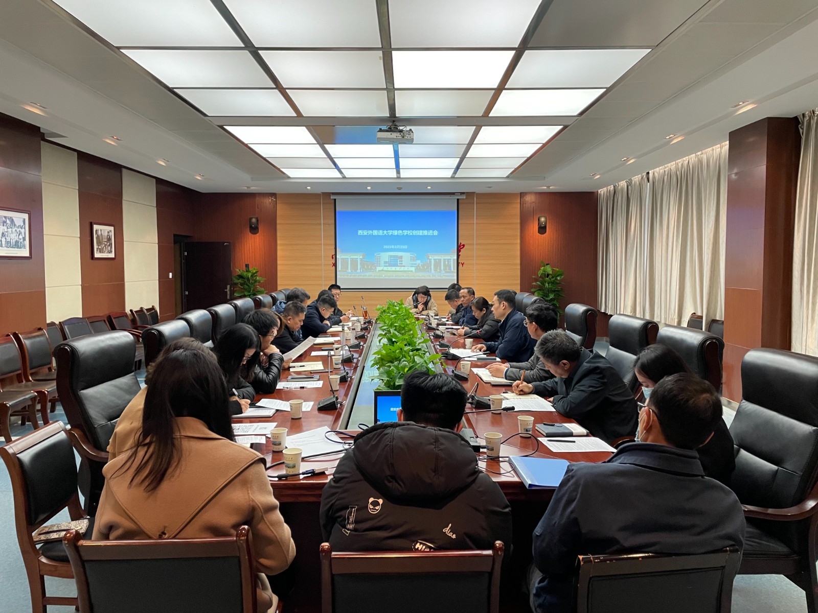 为深入贯彻落实习近平生态文明思想,进一步践行绿色发展理念,精准落实《陕西省绿色学校(高等学校)创建行动方案》要求,2023年3月23日上午,我校在行政楼B401会议室召开了绿色学校创建工作推进会。副校长、绿色学校工作领导小组副组长吴耀武出席会议,各职能部门和部分二级学院负责人参加会议。会议由后勤管理处处长、绿色学校工作领导小组办公室主任张涛主持。