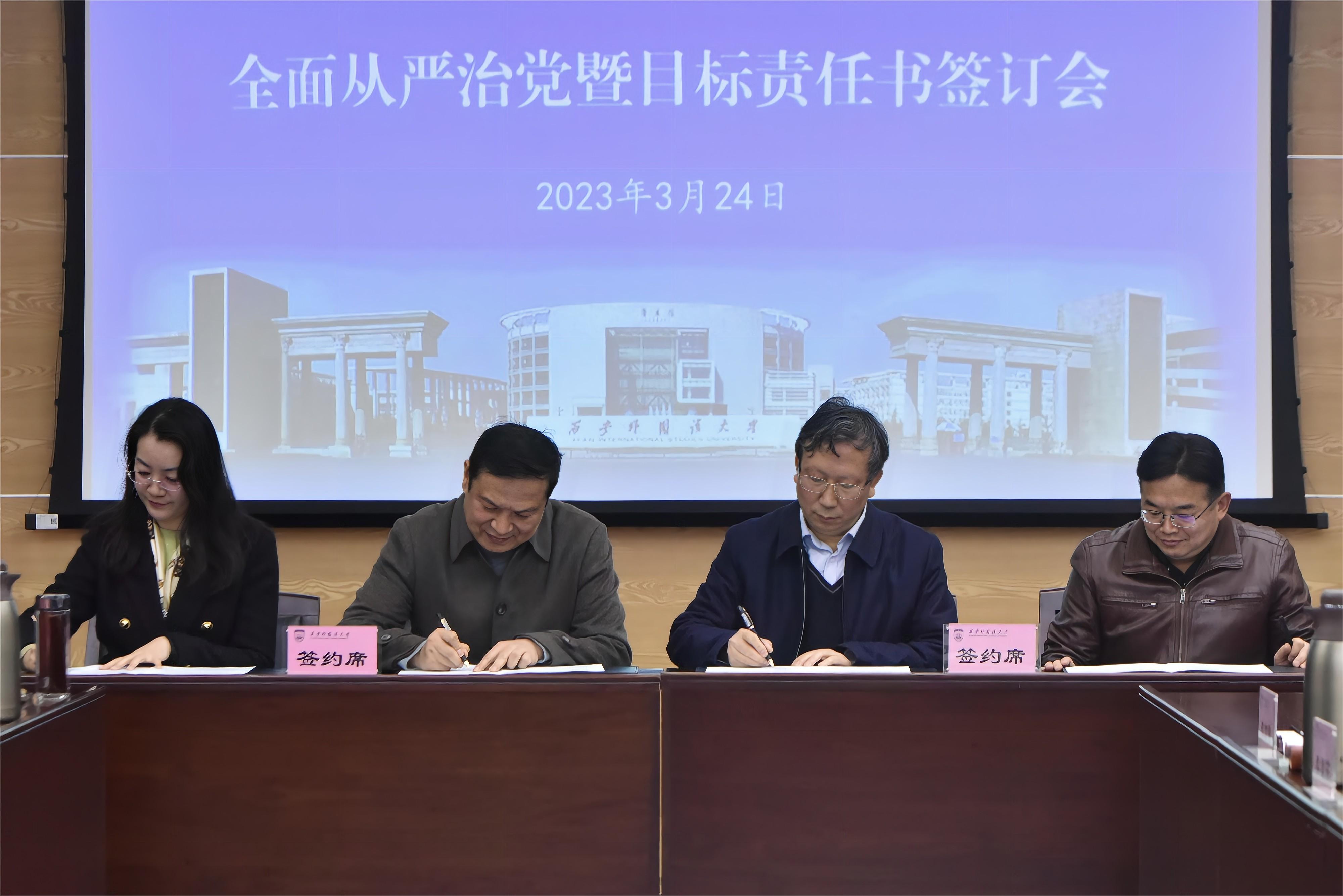 3月24日上午,学校在行政楼B304会议室召开全面从严治党暨目标责任书签订会,总结2022年全面从严治党工作,安排本年度重点任务,对开展干部作风能力提升年活动进行动员和部署。全体在校校领导和各单位、各部门党政负责人参加会议。会议由党委副书记、副校长(主持行政工作)王启龙主持。