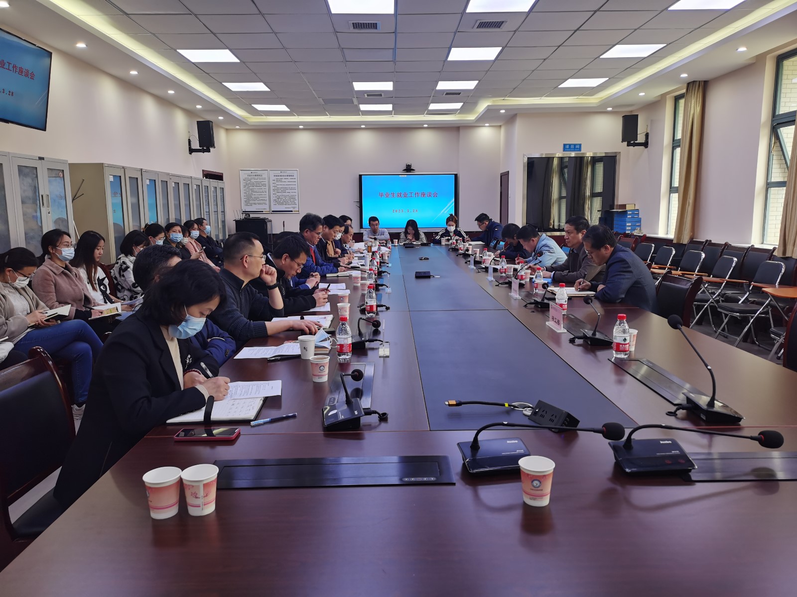 座谈会上,学院党政负责人介绍了学院学生落实去向进展情况,分析了开展工作的难点重点,提出进一步做好学生就业工作的办法和举措。辅导员老师汇报了学生求职择业、升学考公等情况。学生代表结合自身求职和升学经历,分别就来校招聘单位类别及岗位、实习和择业的关系等提出诉求。