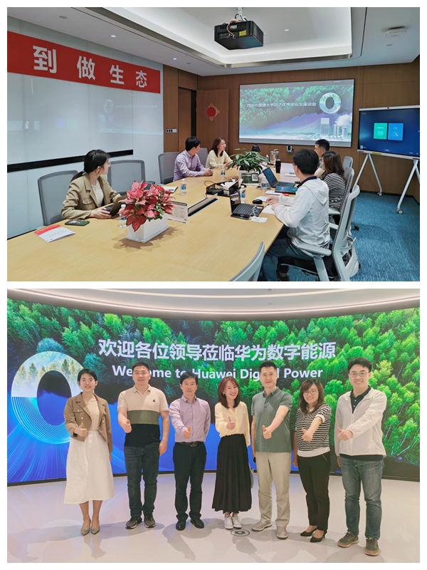 4月14日下午,访问团走访华为数字能源技术有限公司。数字能源全球合作伙伴与生态发展部部长郑彬平、数字能源新员工资源池部长孙歆、数字能源全球伙伴发展与销售部合作伙伴运营经理黎伟乐、我校2018级毕业生于佳佳出席座谈会。