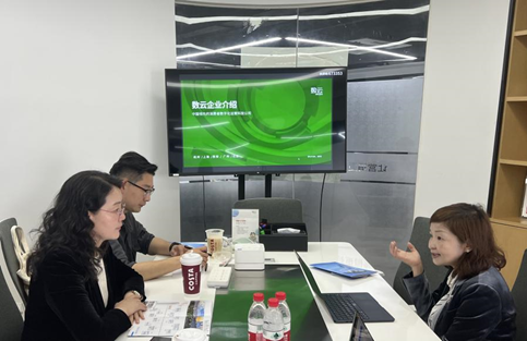 在杭州数云信息技术有限公司,副总裁颜雯芳介绍了数云公司的发展历程、未来规划以及对人才的实际需求。邓雯介绍人才培养特色的同时重点说明了本次访企拓岗的目的,并结合数云业务范围,有针对性地介绍了学院相关专业的毕业生,提出双方在科学研究、人才培养等方面深化合作与交流的可能性,既立足当前为2023届毕业生开拓更多优质就业岗位,又着眼完善校企合作交流常态化机制,以“访”促“拓”,互惠共赢、协同发展。