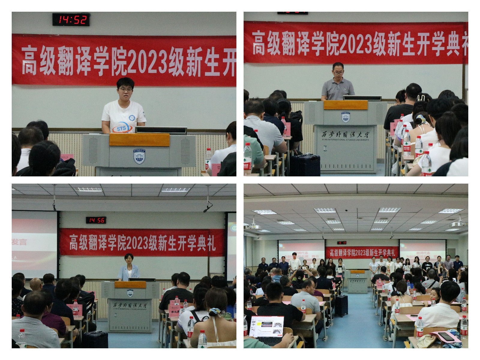 学院2021级翻译专业本科生、学生会主席李佳钰以“在西外的成长”为题,分享了自己在西外高翻求学的感悟与体会,鼓励学弟学妹们利用好有限的大学时光,既要夯实专业基础也要注重全面发展,在努力开阔个人视域、提升专业技能的同时,勇敢肩负起不同文化和语言间交流使者的光荣使命。2023级笔译3班梁誉文作为新生代表,结合自己的人生经历分析了语言学科的独特魅力,号召同学们不断找准时代定位,在学习和社会实践中不断磨砺专业技能,利用交流实践机会,叙说中华文化的生动故事,缔结起多元文化交流的纽带,整合起美美与共、和衷共济的强大力量。