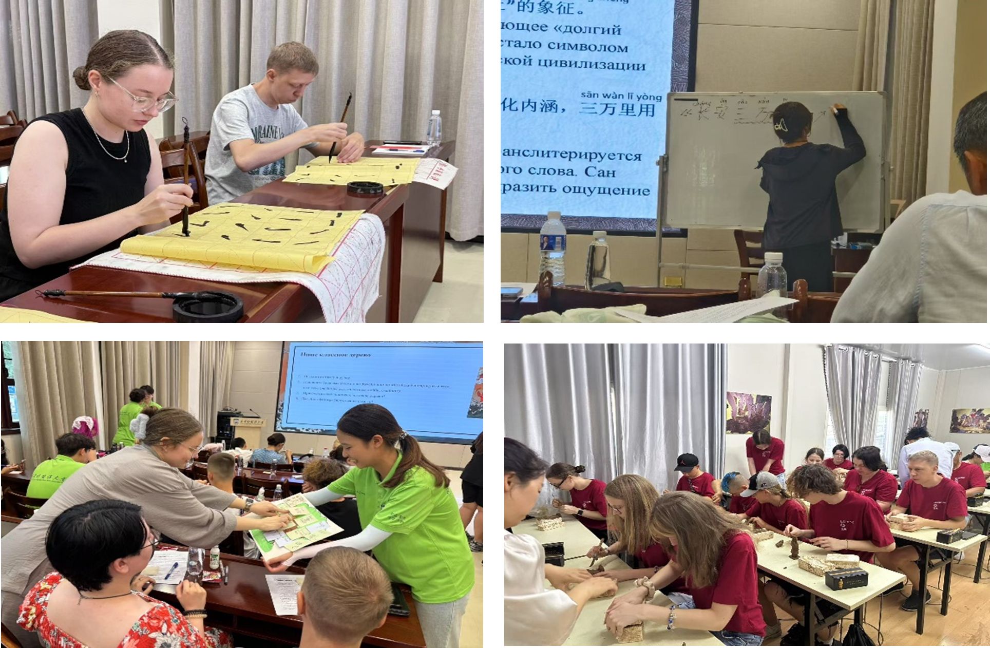 文化体验环节,志愿者成为文化“传播者”。在漆扇、陶俑复制、民族舞蹈等非遗体验课上,他们悉心指导;书法课上,幽默的比喻让笔画学习充满乐趣。志愿者们还带领大家走访博物馆和文化街区,用流利俄语生动讲述文物故事,展现中华文化魅力。