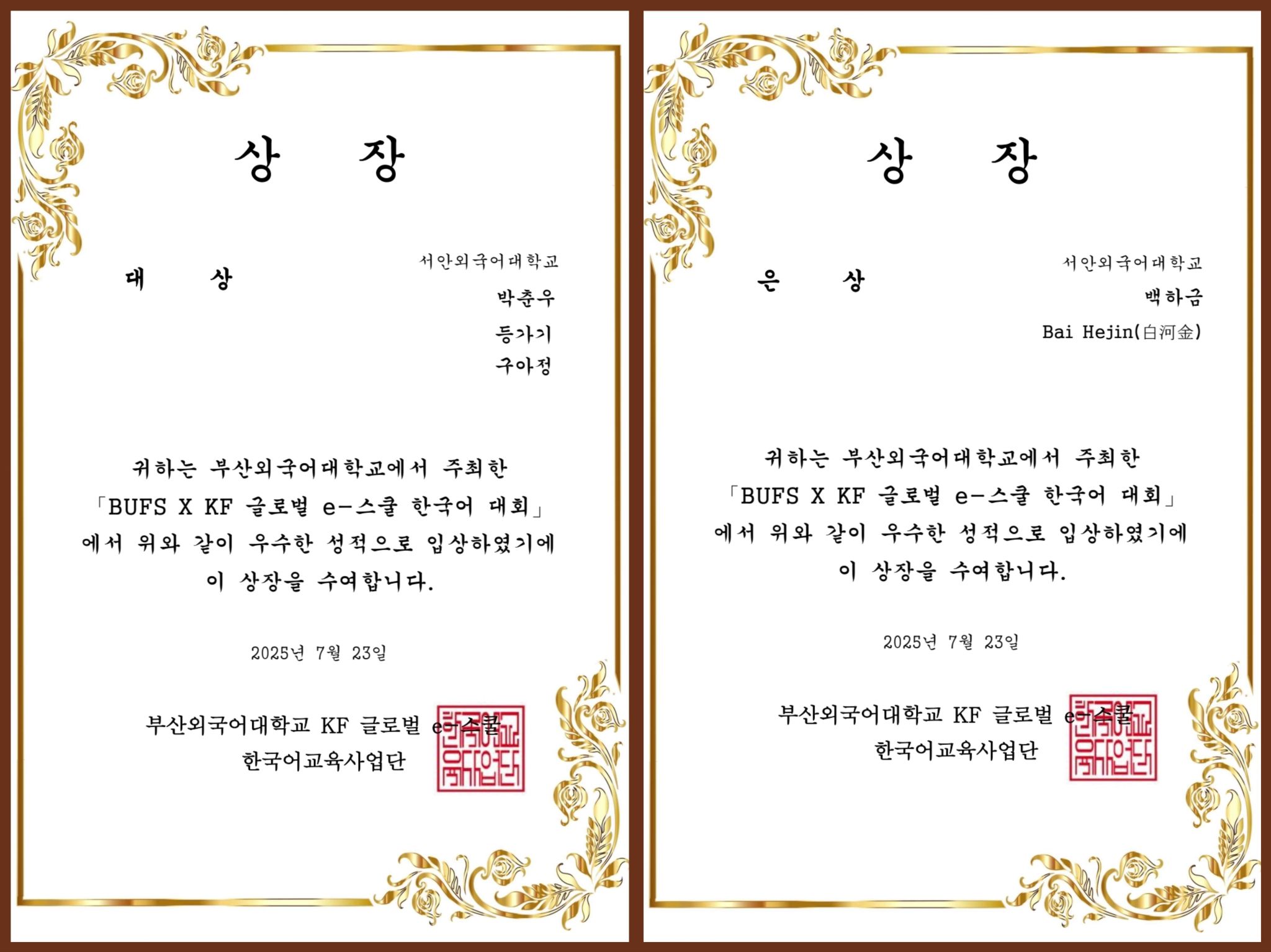 该赛事由韩国国际交流财团与釜山外国语大学联合主办,吸引了来自中国、俄罗斯、巴西、越南、意大利等多个国家的青年学生参与。大赛奖项设大奖1组、金奖2组、银奖3组。