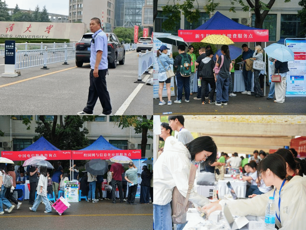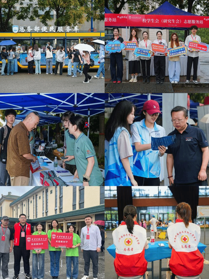 暖心报到,尽显温情守护。在西安火车站、地铁 2 号线韦曲南站设立迎新接待站免费接送新生及家长,实现 “出站即入校”。校园内,遮雨棚沿主要道路依次排开;各个迎新站点均设有免费饮品供应处;在公共区、宿舍区设置 “家长休息区”。此外,学校为 45 名同学发放 “绿色通道爱心礼包”;志愿者们热情地提供行李搬运、路线指引等服务,充分展现了西外青年的精神风貌。