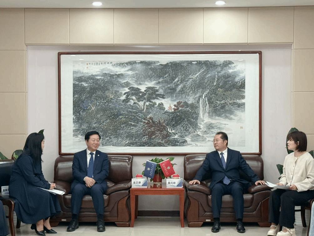 2025年9月26日,韩国国立忠南大学校长金正谦一行访问我校,我校副校长桑元峰会见了来宾,国际合作与交流处、国际学院负责人参加会见。