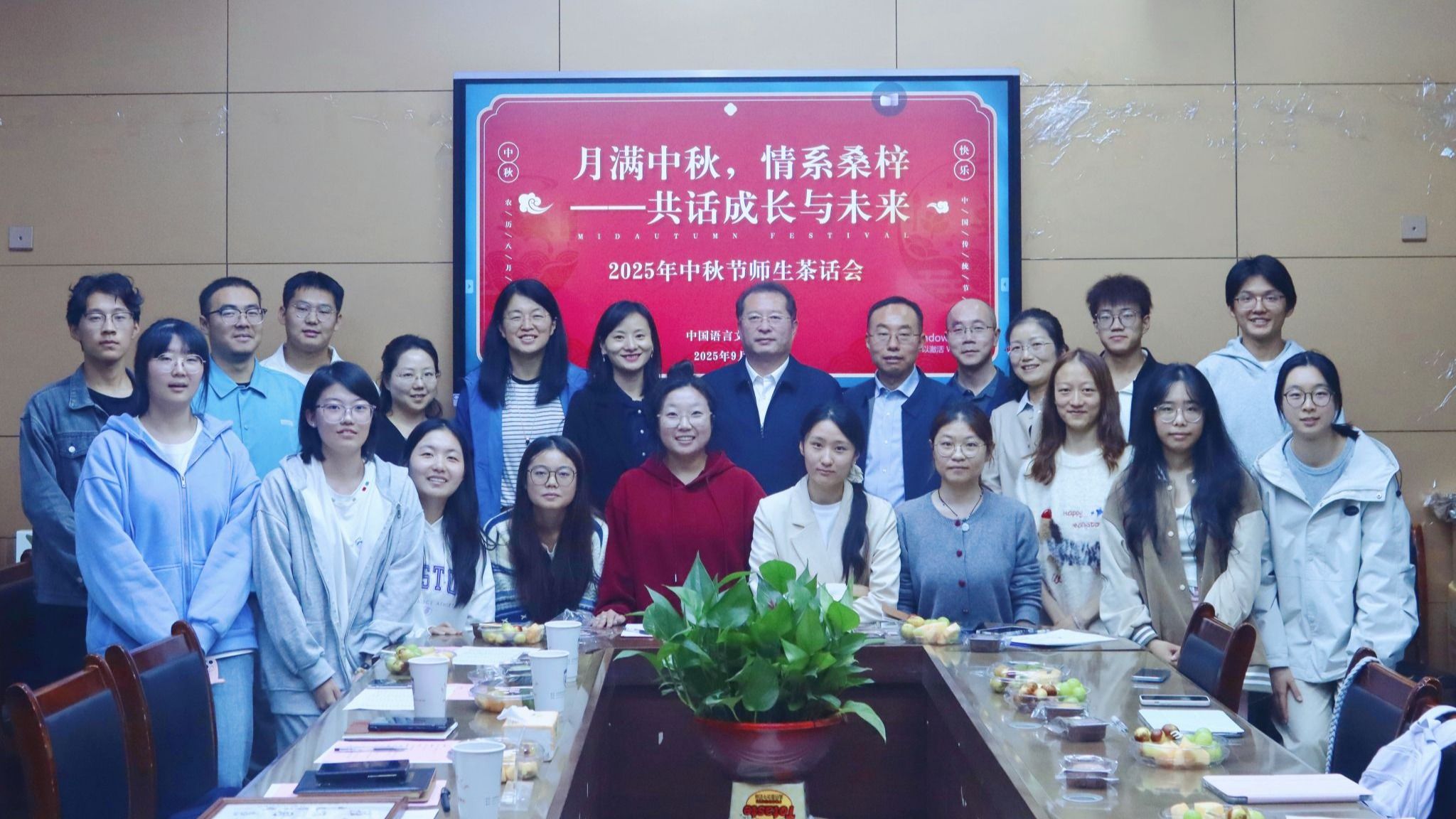 9月28日,中国语言文学学院举办2025秋季返乡座谈会暨中秋师生茶话会。副校长桑元峰、总务部副部长杜娟、学院班子成员、辅导员代表以及本硕15名学生代表共同参会。会议由学院党委副书记夏玉瑜主持。