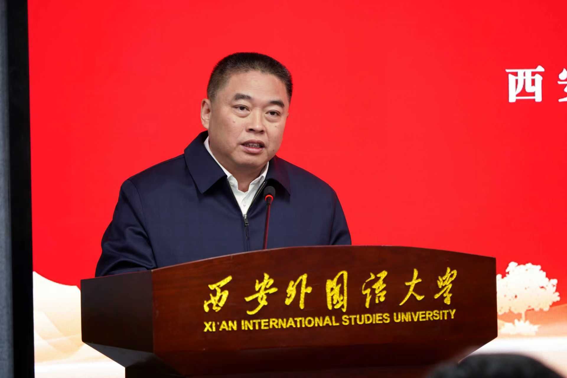 刘振涛致欢迎词,他表示中心将依托学校外语特色与人文社科研究优势,积极服务陕西文化的传承创新与对外传播,为建设文化强省、文化强国贡献智慧力量。贾平凹在讲话中肯定了中心为陕西作家研究搭建的专业平台,他高度评价吴克敬作品中对黄土高原人文情怀的坚守,呼吁学界持续关注本土创作。