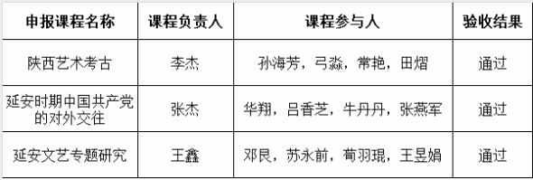 近日,陕西省教育厅发布了《陕西省教育厅办公室关于公布陕西特色线上课程验收认定结果的通知》(陕教高办〔2025〕26号),我校《陕西艺术考古》《延安时期中国共产党的对外交往》《延安文艺专题研究》三门课程顺利通过验收。