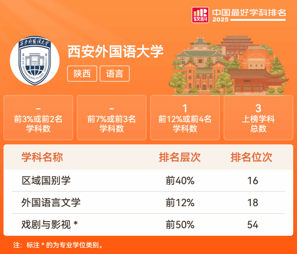 10月15日,高等教育评价机构软科正式发布“2025软科中国最好学科排名”。我校外国语言文学、区域国别学、戏剧与影视3个学科(专业学位类别)上榜。其中外国语言文学以第18名位列排行榜前12%,较2024年前进4名。区域国别学以第16名位列排行榜前40%,戏剧与影视以第54名进入排行榜前50%。
