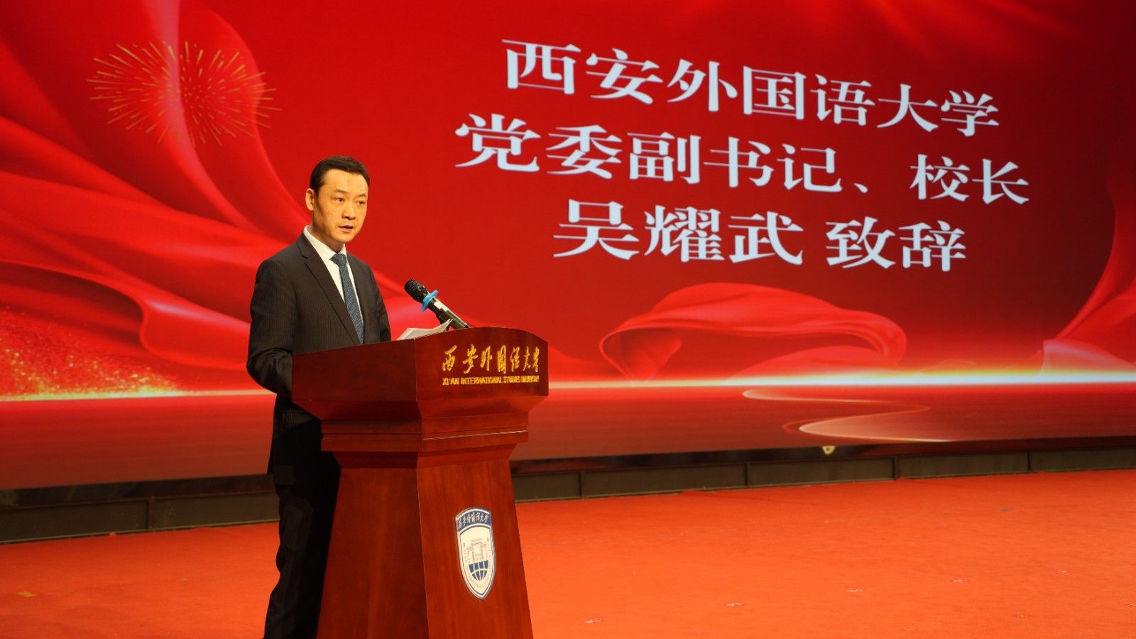 吴耀武在致辞中对各位嘉宾的到来表示热烈欢迎,对学院二十年来取得的发展成就予以充分肯定。他指出,学院积极响应号召,致力于“讲好中国故事,传播中国声音”,在人才培养模式创新、政产学研协同体系构建、学科交叉融合等方面成效显著,培养了一批“懂语言、通文化、精专业”的复合型人才。希望学院站在历史的新起点上,在服务国家战略、推动文明互鉴中作出更大贡献。