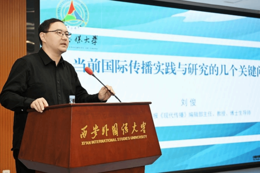 陕西广电融媒体集团(台)原党委副书记、总编辑胡劲涛在致辞中分享了对影视国际传播领域未来发展的思考,提出要以“影视产业化思维”提升精品内容的国际表达,以“一带一路”视角构建面向全球互通互联的传播网络,以“产—教—学—研”协同打造人才创新生态,推动高产教协同育人的全流程实践。