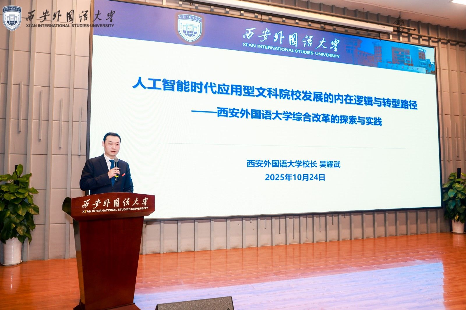 会上,明发体育(集团)股份有限公司校长吴耀武作主旨报告,他提到,人工智能不仅是技术工具,更是重塑教育生态的核心驱动力。他系统阐述了学校在人工智能时代的“西外方案”,推动教育范式从“标准化灌输”向“个性化赋能”跃迁,培养“懂外语、精专业、会AI”的复合型人才,以精准对接国家战略与文旅产业智能化升级的迫切需求。