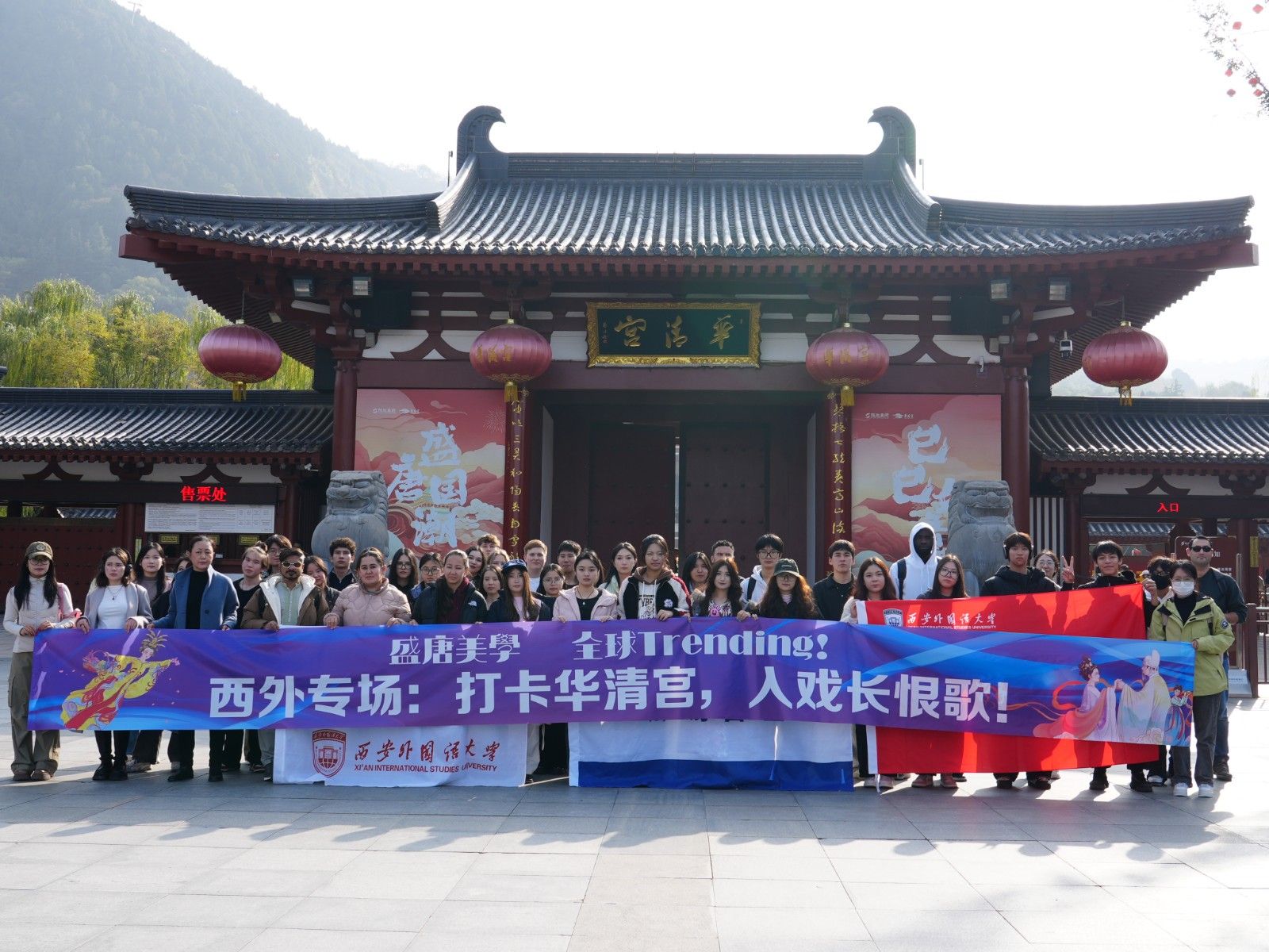 下午,师生在华清宫迎宾入城仪式中开启参观,探访汤池遗址与飞霜殿,系统了解唐代宫廷生活与温泉文化。随后,实景影画《12·12》以震撼的光影叙事重现西安事变这一近代史关键转折,让青年学子深刻感悟中华民族在危难中团结御侮、追求和平的精神信念。夜幕降临,师生欣赏实景演出《长恨歌》,在史实与诗意中感知中华文明底蕴。