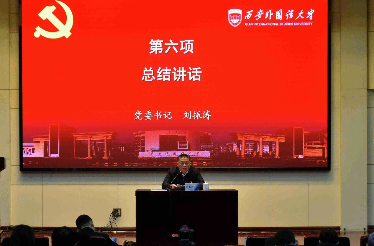 党委书记刘振涛为学校党性教育基地和党校数智红色教育基地授牌,为党务干部代表赠送学校自主编印的《党建工作制度汇编》《党支部书记365问》和《党建与业务融合案例汇编》,并作总结讲话。他指出,全校上下要深刻领会推进党建工作的重大意义,把稳把准“以人民为中心”的根本立场、“问题导向”的实践方法、“系统观念”的辩证思维,将思想建设贯穿融入教育教学全过程,把作风建设落到服务实处。他强调,要着力增强基层党组织政治功能和组织功能,把党支部建设成为坚决贯彻党的路线方针政策的坚强堡垒;要聚焦师生急难愁盼问题,持续深化服务型校园建设;要挖掘好、利用好校内资源,创新抓好理论武装;要聚焦党建引领,持续推动党建与教学科研、学生培养等业务深度融合;要抓好党组织书记抓基层党建述职评议考核,强化结果运用,凝聚党建工作合力。