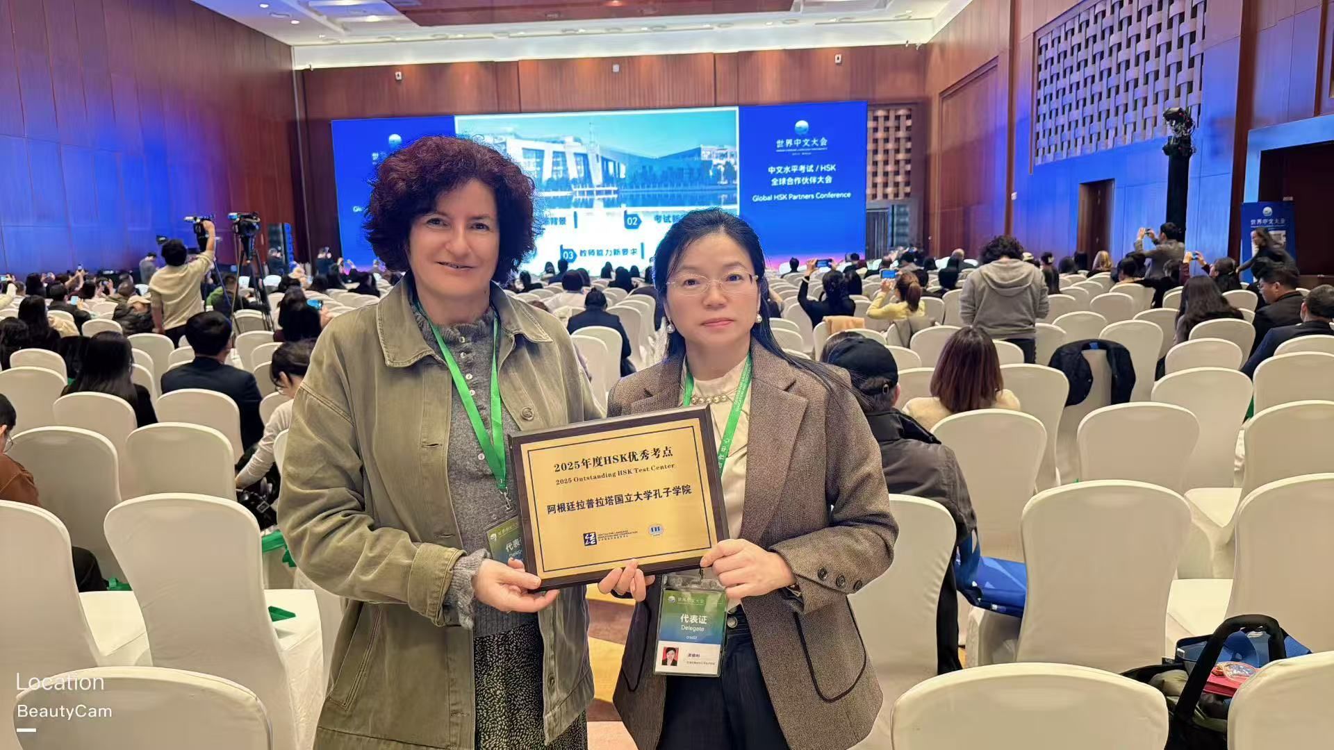 此外,我校阿根廷拉普拉塔国立大学孔子学院荣获2025年度“HSK优秀考点”称号。