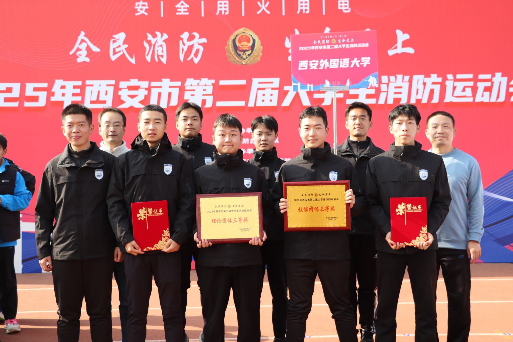 此次参赛不仅为我校赢得荣誉,更以赛促学强化了“火焰蓝+志愿蓝”大学生消防志愿服务力量,营造了“全民消防、生命至上”浓厚氛围,增强了师生消防安全意识,为有效预防和减少火灾事故发生,构建“平安西外”打下坚实基础。