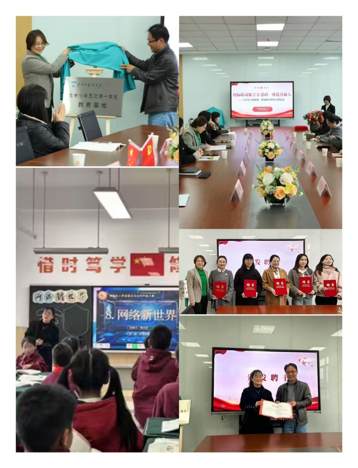 在集体备课会上,举行了我校大中小学思政课一体化教育基地的揭牌仪式,我校马院部分思政课教师被聘为长安八小课外辅导员,与会人员还一起观摩了八小教师陶艺丹讲授的道德与法治课示范课。