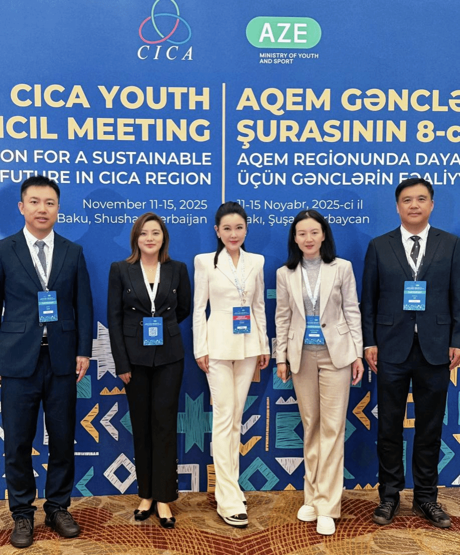 受共青团陕西省委邀请,我校团委社管部武文思作为中国青年代表团秘书长,随同省青联副主席、延安革命纪念地管理局枣园旧址管理处主任党婕睿一行于2025年11月11日至15日赴阿塞拜疆首都巴库市参加亚洲相互协作与信任措施会议青年委员会(以下简称“亚信青委会”)第八次会议及相关活动。