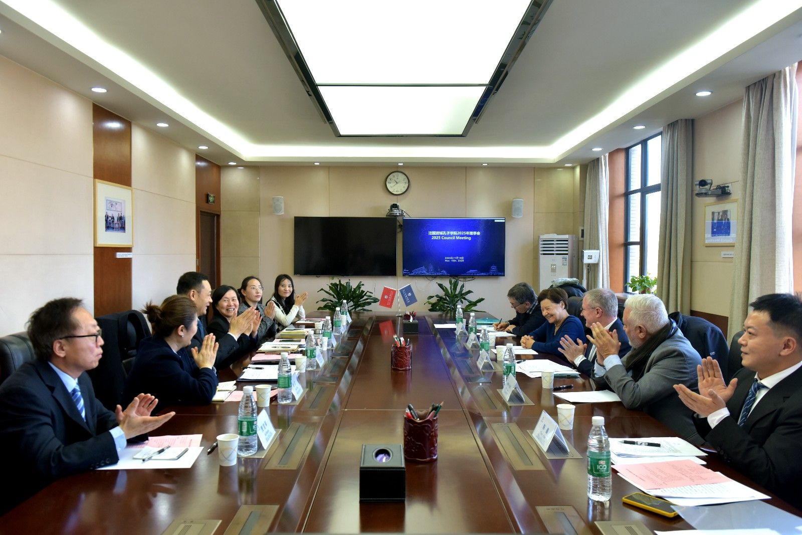 会议由我校副校长邓滢主持。法国波城大学校长、理事会理事洛朗·博尔德与我校校长吴耀武出席会议并致辞。法国阿基坦-波城继续教育大学校长埃莉安·斯布鲁涅拉、阿尔布斯市市长迪迪埃·拉里厄、孔子学院中外方院长,以及我校国际合作与交流处负责人共同参会。